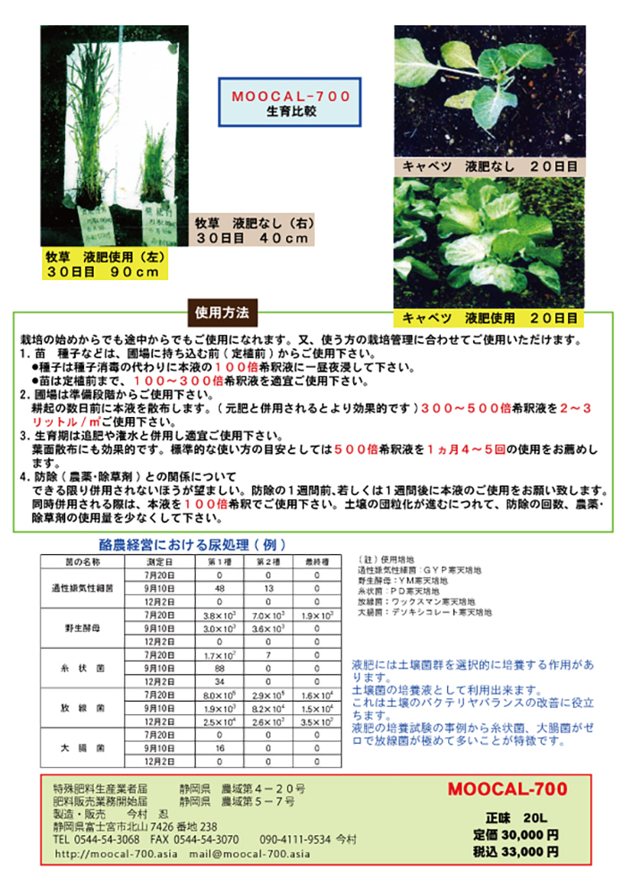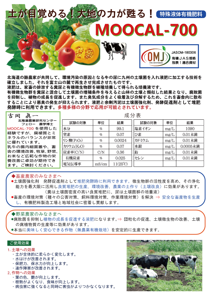 MOOCAL-700は、有機JAS資材リストに登録された特殊液体有機肥料です。